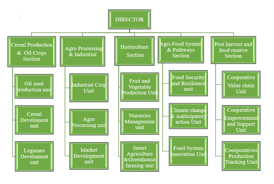 The Crop Production Department in the Ministry of Agriculture and Irrigation is responsible for enhancing agricultural productivity and ensuring food security through the development and promotion of sustainable crop production practices. Its mandate includes improving seed varieties, implementing modern farming techniques, managing pests and diseases, and optimizing irrigation systems. The department supports farmers with technical assistance, research-based solutions, and access to resources, fostering increased yields and resilience to climate change while contributing to the nation’s economic growth and food sustainability.